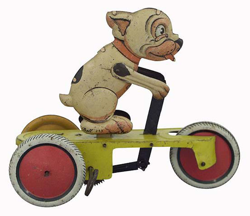 Bell Co. Bonzo on Scooter, Italy, 6″ Long, Tin, 1925