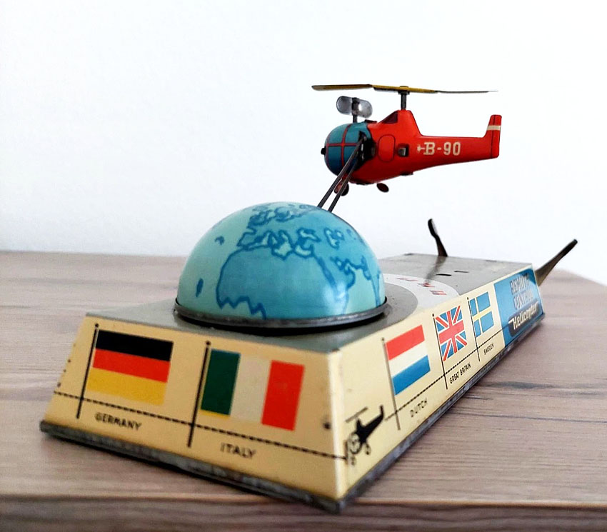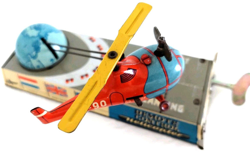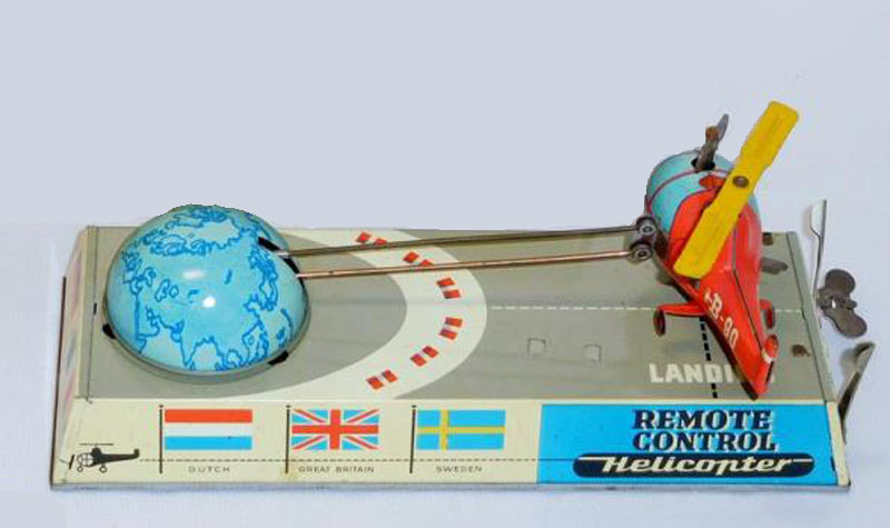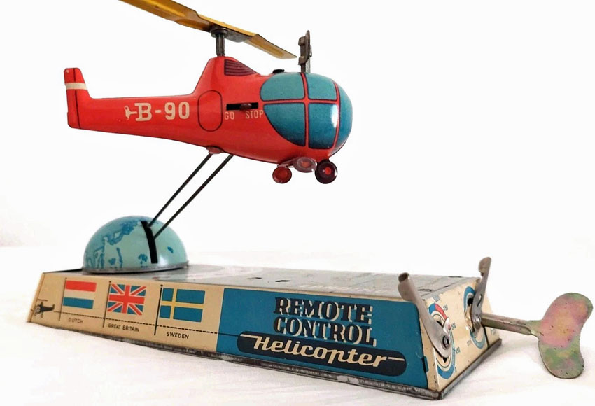 Biller Helicopter AR-90 Hand Operated Remote Control, Windup, 9″ long, Tin, 1950’s, West German