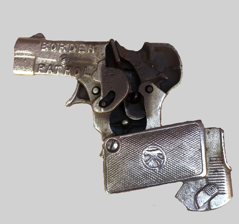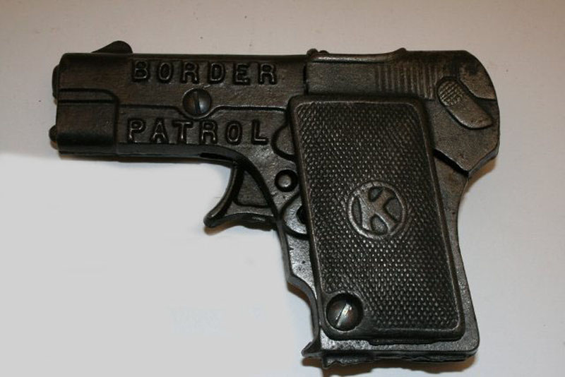 Kilgore Border Patrol Cap Gun, Cast Iron, 4 1/2″ long x 3 1/4″ high, 1930’s