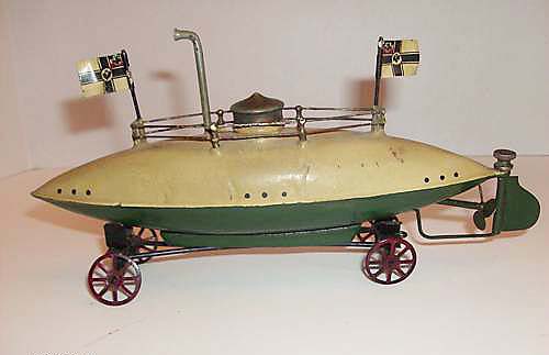 Carette Submarine, Windup, 9″ long, Tinplate, 1910