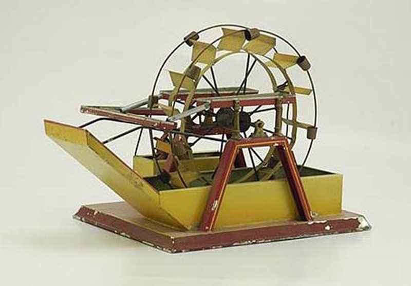 Carette Water Elevator Toy, 9″ high x 15″ long, Steam Powered, Tin, 1911