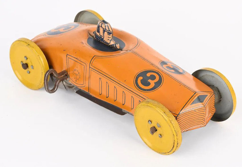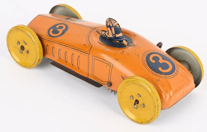 Chein Race Car No. 3, Windup, 6 1/2″ long, Tin, 1920’s