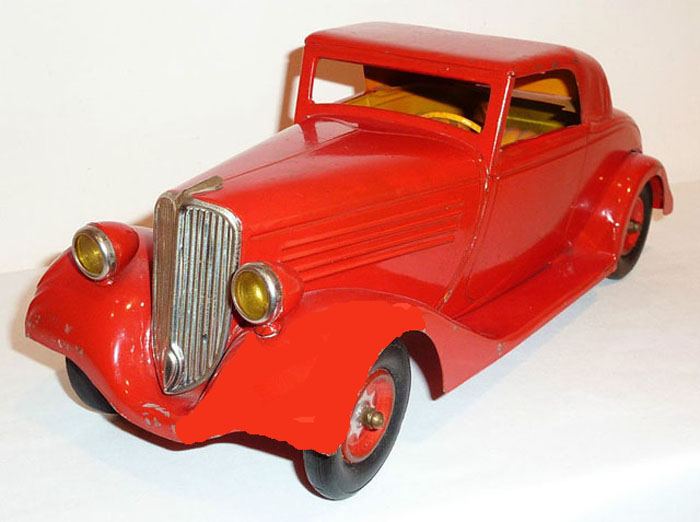 CIJ Renault Viva Sport Coupe Car No. 5/14, Windup, 11.75″ long, Tin Litho., 1930’s