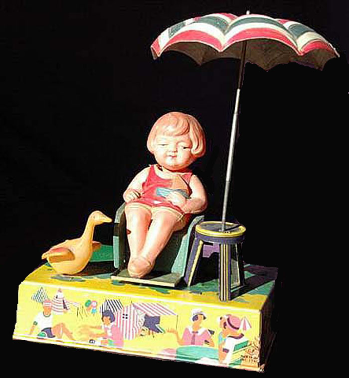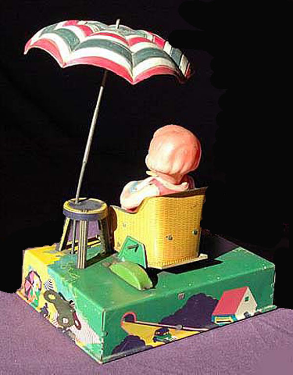 Kuramochi CK Happy Life Toy, Celluloid/Tin Litho., Windup, 9″ high x 6.5″ wide x 4.5″ deep Toy