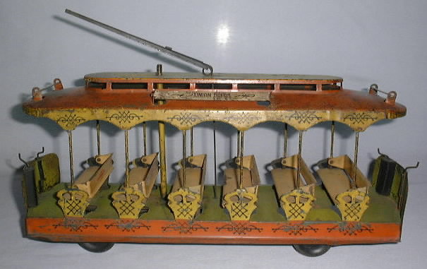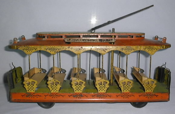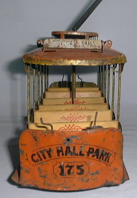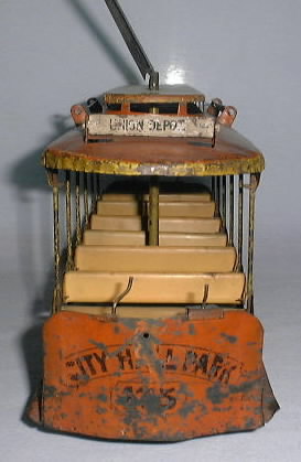 Converse City Hall Park Summer Trolley, Windup, 17″ long x 8″ high, Tin, 1900’s