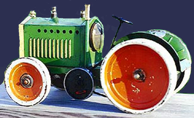 Manufacturer: Doll et Cie Year: 1930's Category: Tractor Material: Metal Powered: Steam Powered Size: 10 1/4" Long x 5 5/8" Wide x 6 1/8" High