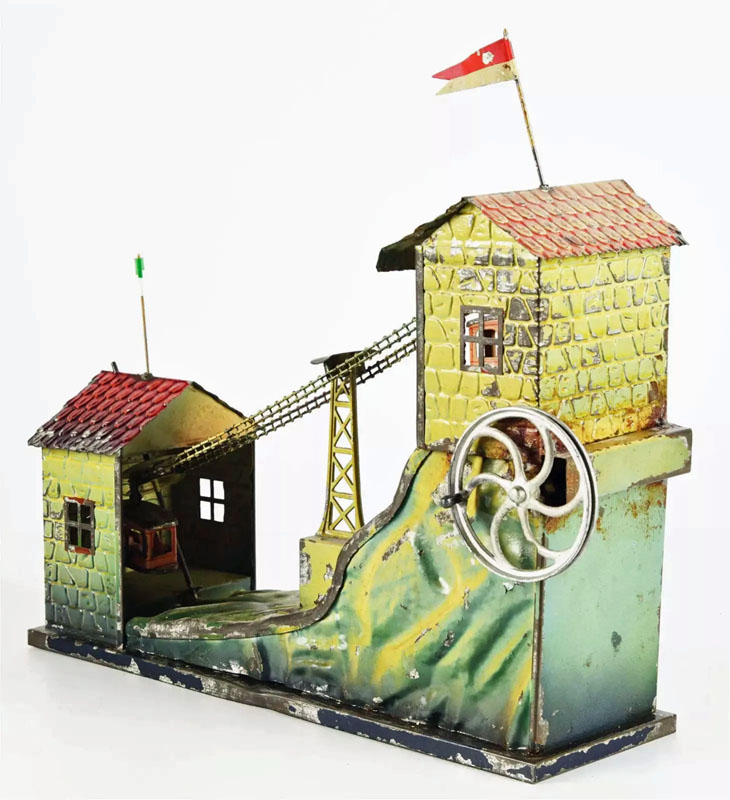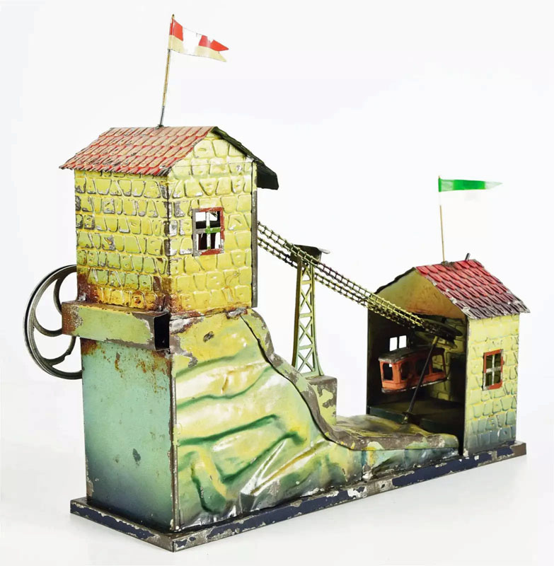 Doll et Cie Ski Gondola, Live Steam, Tin, 15-1/4″ x 4-1/2″ x 13-3/8″, Tin