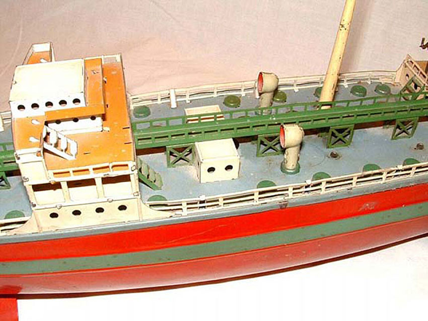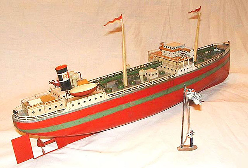 Manufacturer: Fleischmann Year: 1930's Category: Boat Material: Tin Powered: Windup Size: 19.68" long