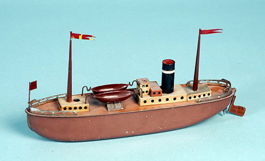 Manufacturer: Fleischmann Year: 1950's Category: Boat Material: Tin Litho. Powered: Windup Size: 10 1/2" long