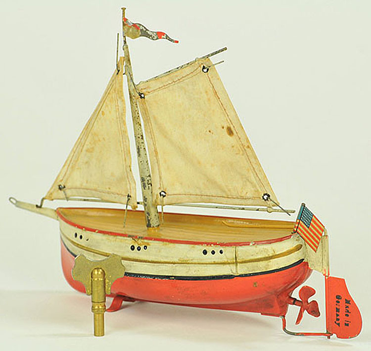 Fleishmann Sail Boat, Windup, 6″ long, Tin, 1908