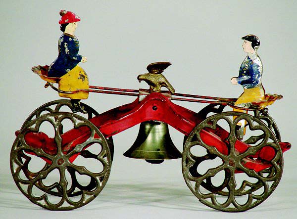 Manufacturer: Gong Bell Year: 1885 Category: Bell Toy Material: Cast Iron Size: 7 ½" long
