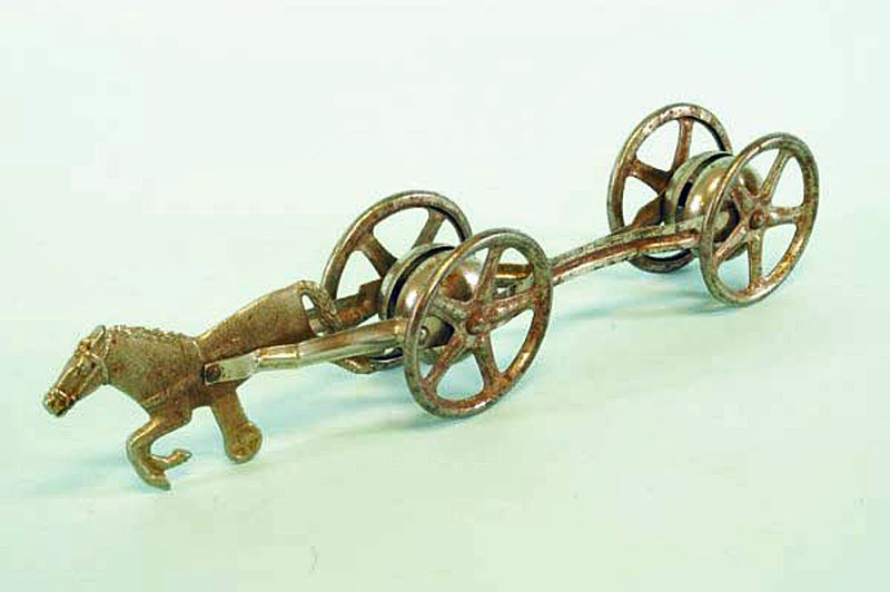 Gong Bell Horse Theme Bell Toy, 13” long, Cast Iron/Steel