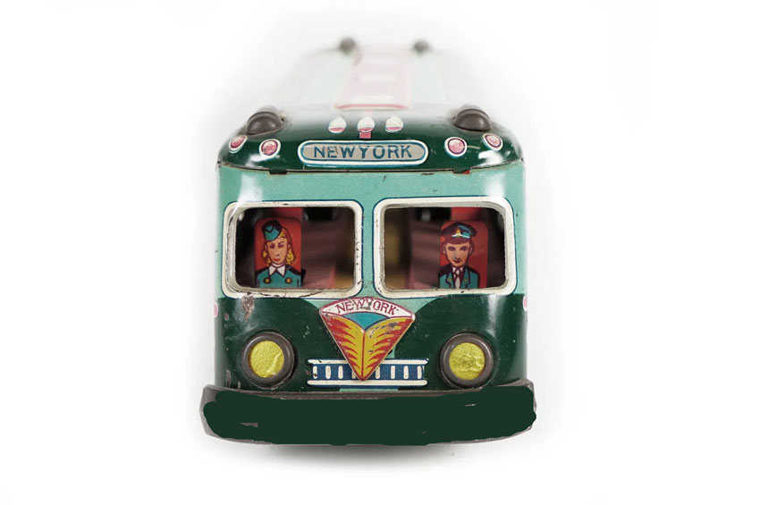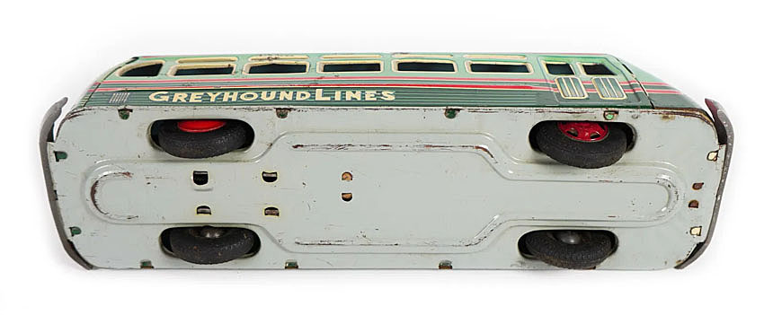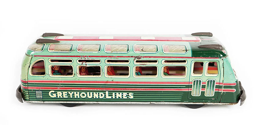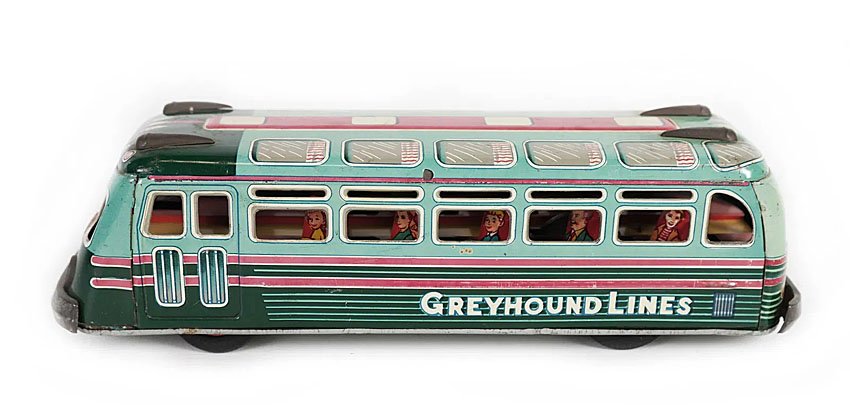 Hadson New York Greyhound Bus Lines, friction, 13″ long, Tin Litho., 1957