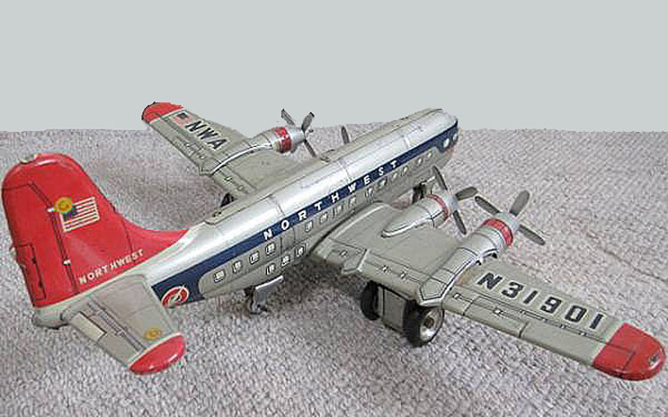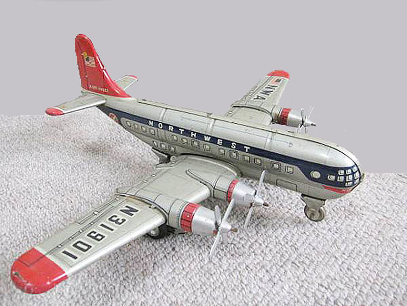 Hadson Northwest Airplane Air Ship B-377 Toy, Tin, 11-27/64″ long x 14-11/64″ wingspan, 1950’s