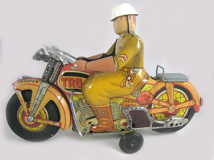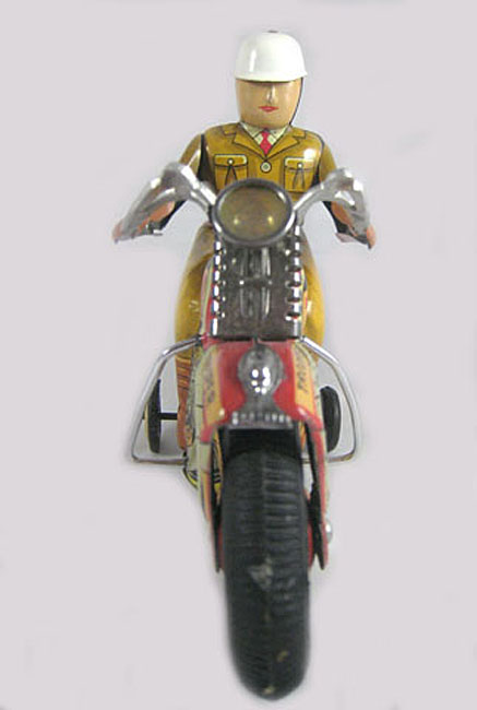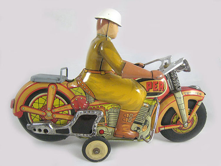 Hadson Police Trooper Motorcycle, Friction, 9.75″ long, Tin Litho., 1950’s