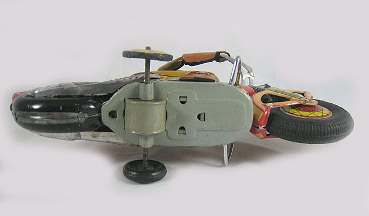 Manufacturer: Hadson Year: 1950's Category: Motorcycle Material: Tin Litho. Powered: Friction Size: 9.75" long