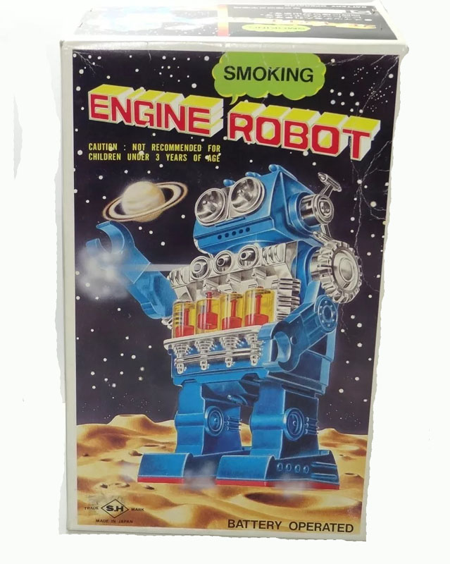 Horikawa SH Smoking Engine Robot, Battery Operated, Plastic, 9.85″ high x 5.90″ wide, 1970’s Japan