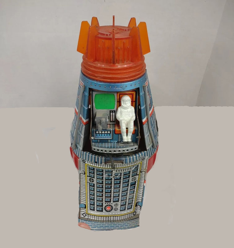Horikawa SH U.S. Space Capsule, Battery Operated, 8.75″ high, Tin Litho.