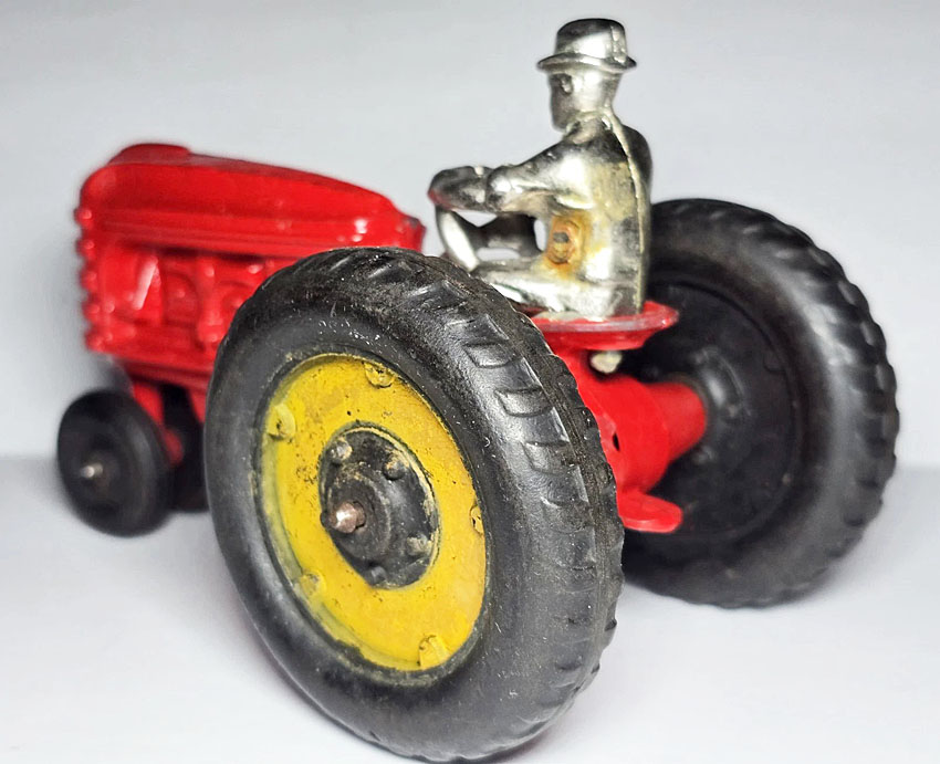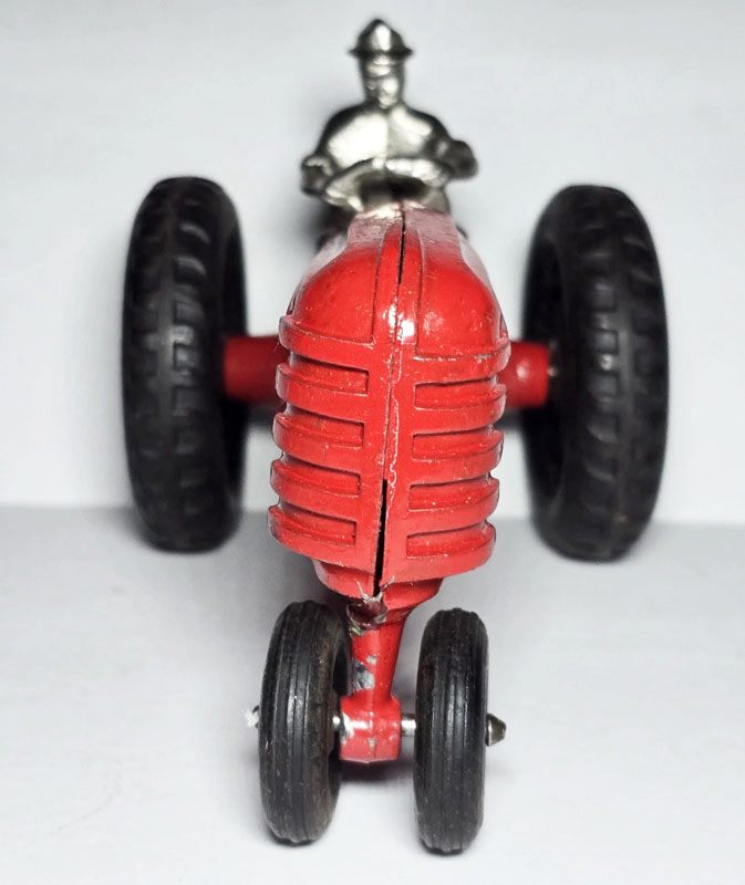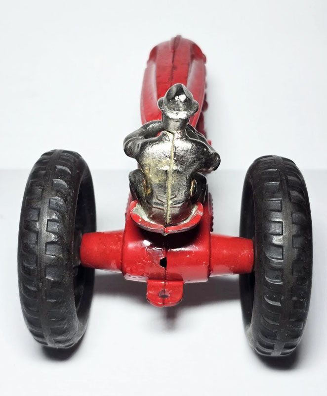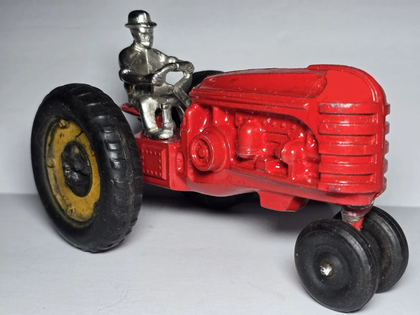 Hubley Massey Harris Farm 3 Wheel Tractor Driver, Cast Iron, 6 1/2″ long x 4″ wide, 1940’s