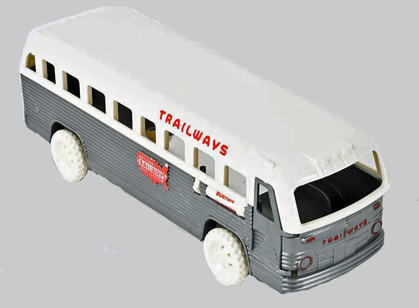 Ideal Trailways Bus, Plastic, 10″ long x 3 1/4 ” high