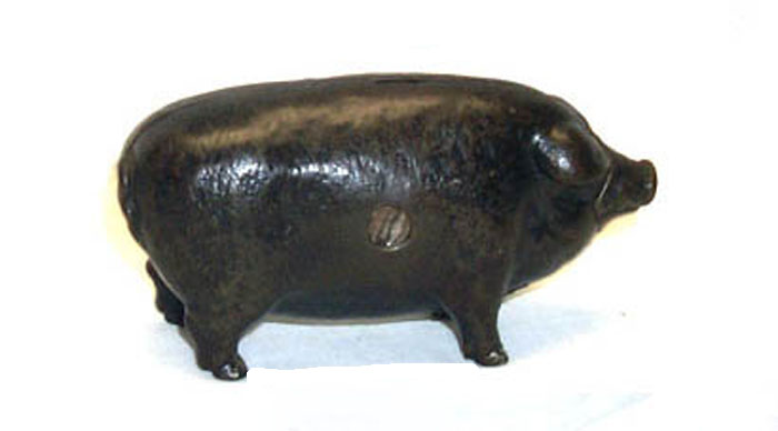 John Harper I Made Chicago Famous Pig Bank, Cast Iron, 4 1/8″ Long x 2 1/8″ high, 1902
