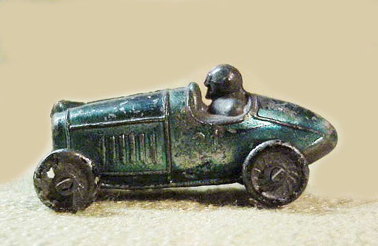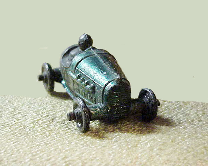 Manufacturer: Kansas Toy & Novelty Co. Year: 1920's-1930's Category: Racer Material: Slush Cast Size: 2 1/8" long