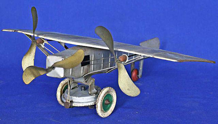 Kingsbury Tri-Motor Airplane, Windup, Pressed Steel, 15 1/4″ long