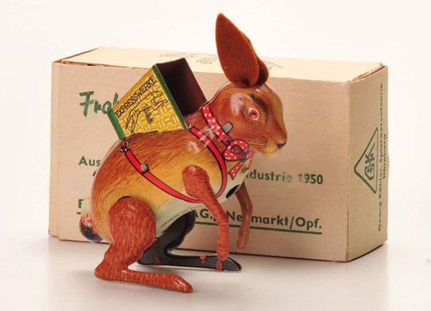 Kohler (GNK) Easter Bunny Express, Windup, 3″ high x 2″ long, Tin