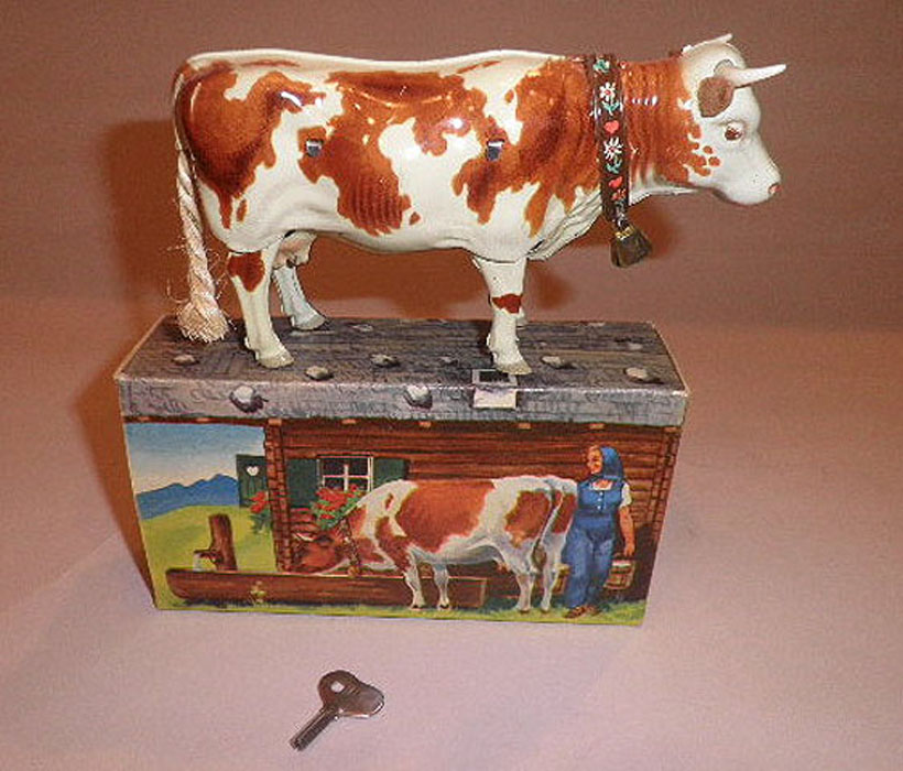 Kohler (GNK) Walking Cow, Windup, 7-3/32″ long, Tin, U.S. Zone Germany