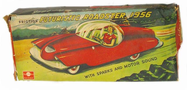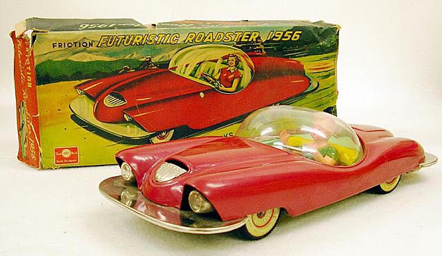 Kuramochi CK Futuristic Roadster, Friction, 12″ Long, Tin/Celluloid, 1956