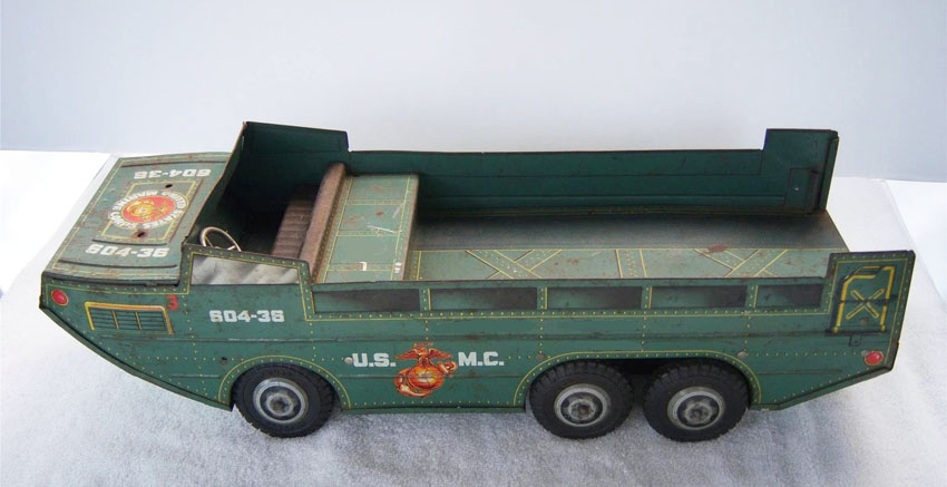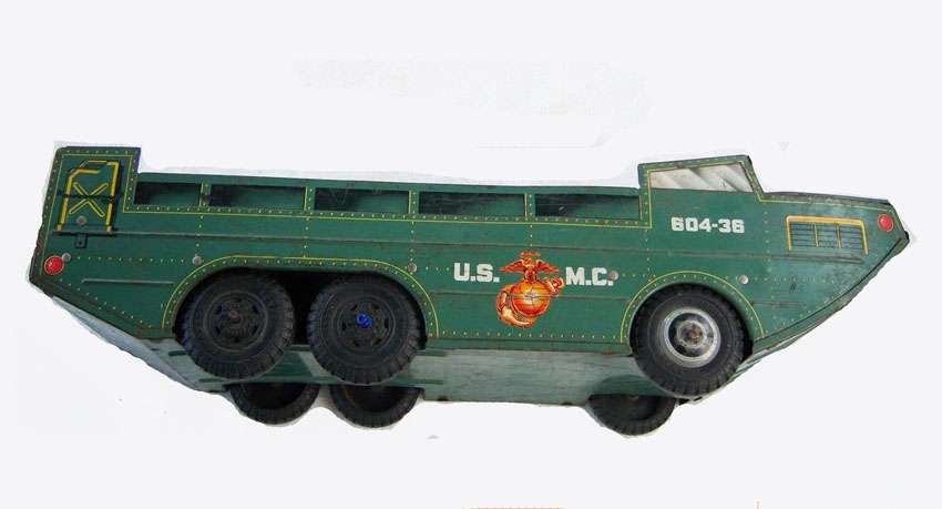 Marx Lumar Amphibous Duck U S M C Truck, Friction, 21 1/2” long x 6″ high x 6 3/4″, Tin