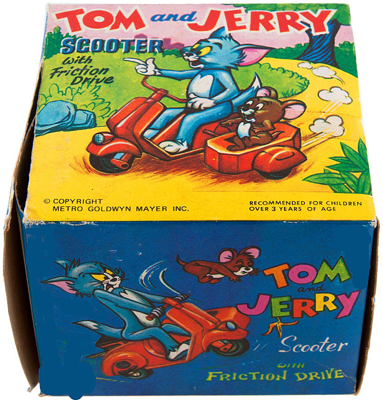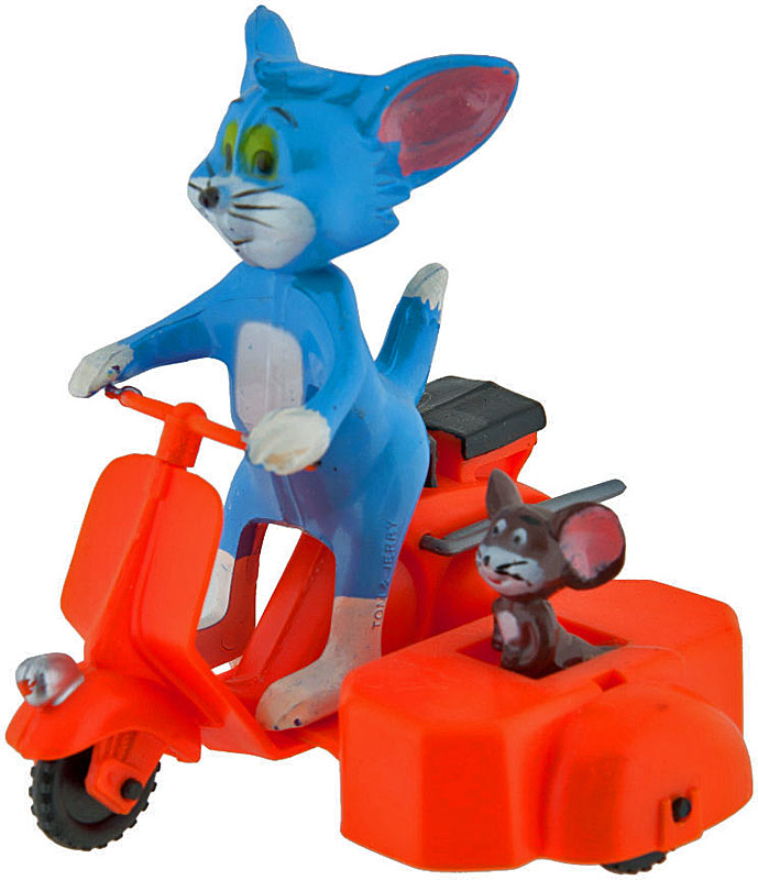 Marx Tom & Jerry Vespa Scooter, Friction, 4-3/8″ high, Plastic, 1971