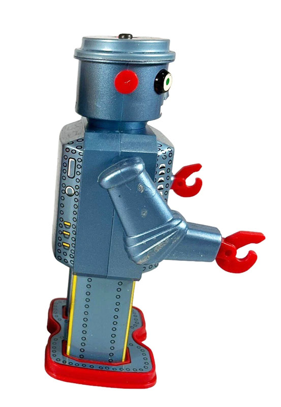 Manufacturer: Masudaya (Modern Toys) Year: 1984 Category: Robot Material: Tin Powered: Battery Operated Size: 4.5" High