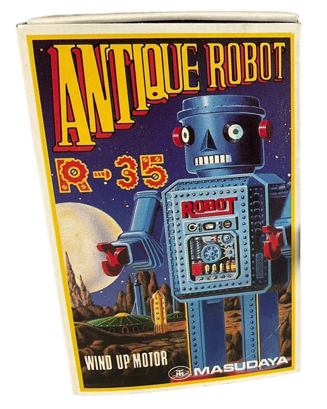 Masudaya (Modern Toys) R-35 Robot, Battery Operated, 4.5″ High, Tin, 1984
