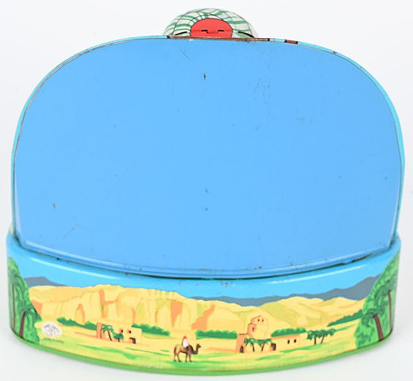 Masudaya (Modern Toys) Snake Charmer, Battery Operated, 6 1/2″ in Diameter, Tin Litho