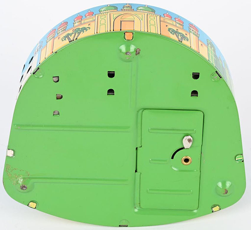 Manufacturer: Masudaya (Modern Toys) Category: Battery Operated Material: Tin Litho Powered: Battery Operated Size: 6 1/2" in Diameter