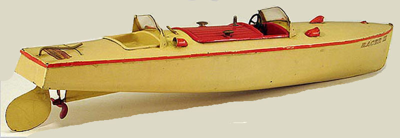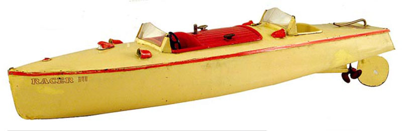 Meccano Hornby Racer III Speed Boat, Clockwork, 17″ Long, Pressed Steel, 1930’s