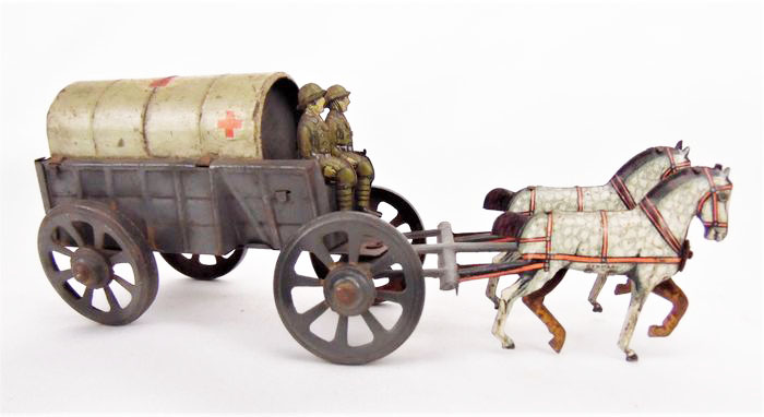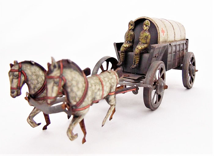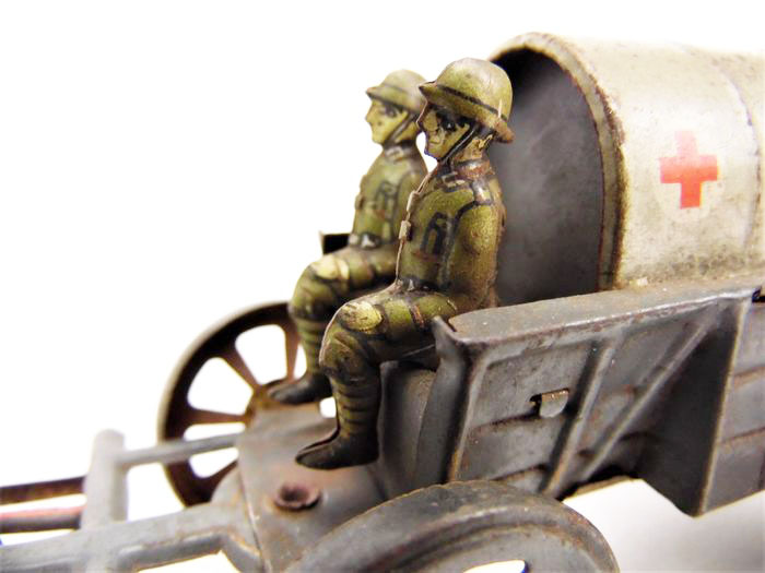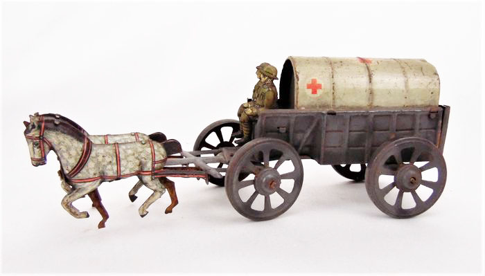 Meier WWI Red Cross Ambulance Wagon, Tin Litho., 2.75″ high × 2.25″ wide × 6.75″ long, 1920’s