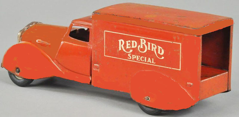 Metalcraft “Red Bird” Delivery Truck, Pressed Steel, 13″ long, 1930’s