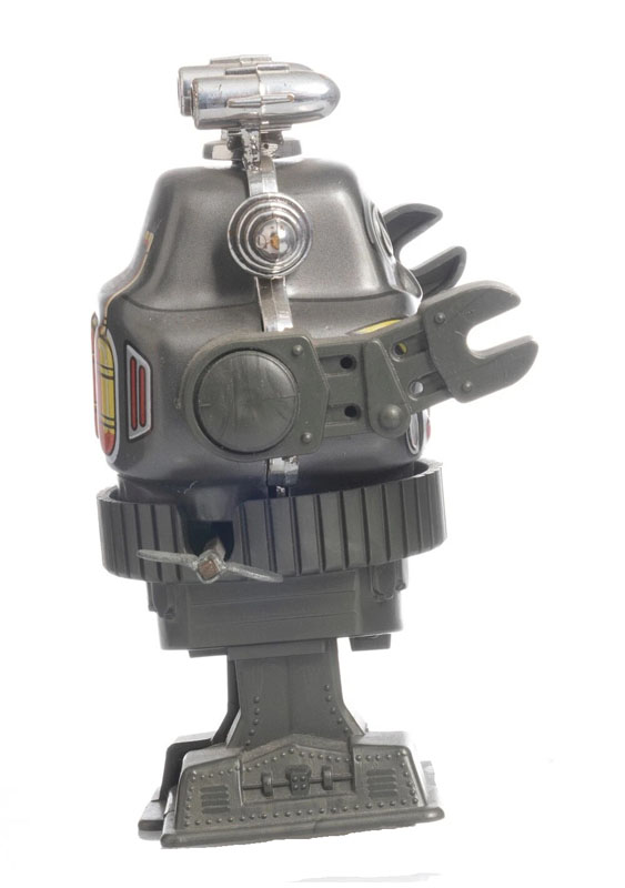Manufacturer: MTU Year: 1950's Category: Robot Material: Tin Powered: Windup Size: 4 1/2" tall