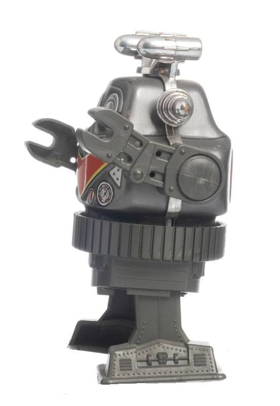 MTU Revolving and Walking Robot Toy, Tin, 4 1/2″ tall, Windup, 1950’s