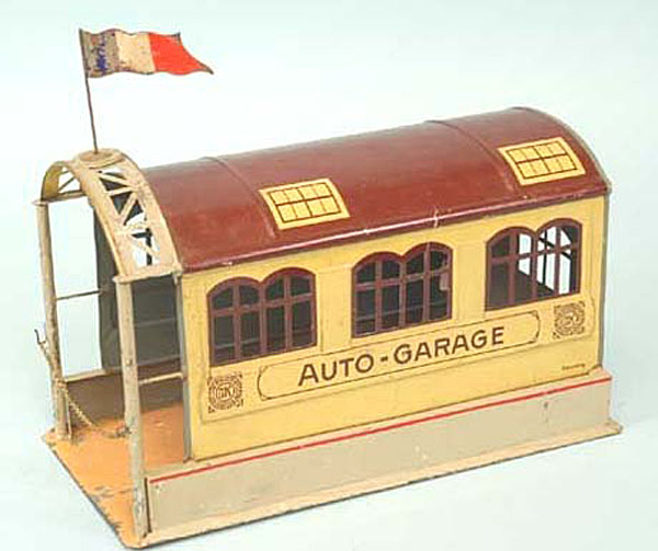 Muller & Kadeder Auto Garage, 12″ long x 7 1/2″ high, Tin Litho., Germany