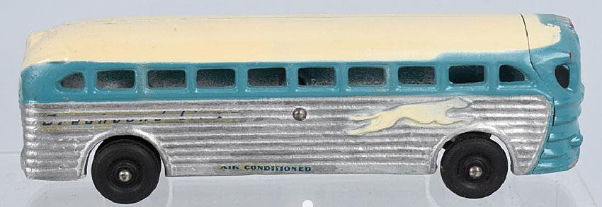Realistic Toys Greyhound Bus, 8 1/2″ long, Aluminum, 1947
