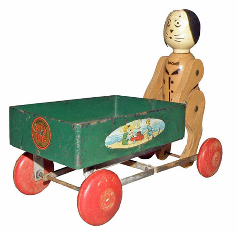 Rich Toys Pull Cart Toy, 8 1/2″ long, Tin/Wood
