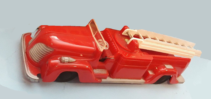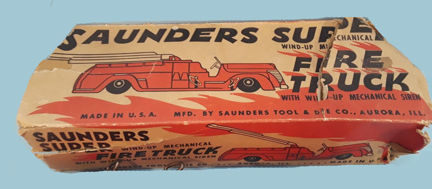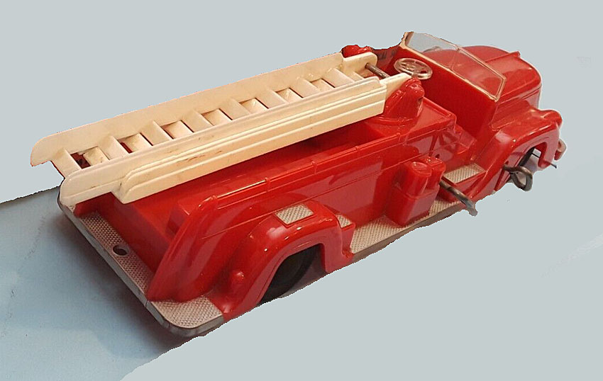 Manufacturer: Saunders Tool & Die Co. Year: 1950's Category: Fire Material: Plastic Powered: Windup Size: Engine 12" long