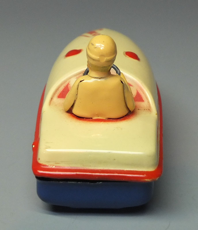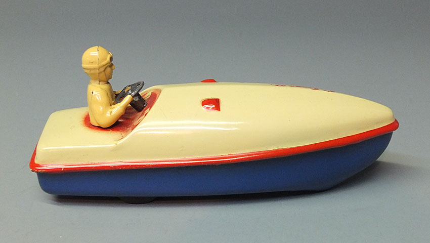 Manufacturer: Schuco Year: 1950's Category: Boat Material: Tin Powered: Windup Size: 5" long
