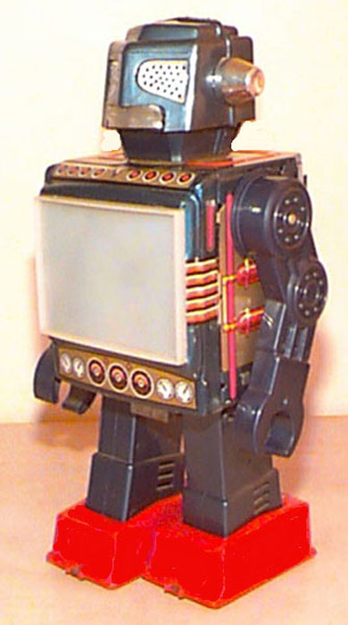 Horikawa SHVideo Robot, 9.5″ high,Tin/Plastic, Battery Operated, Japan, 1960’s