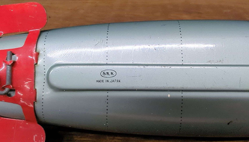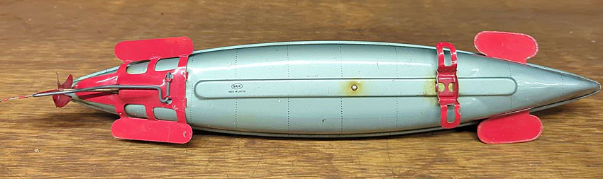 Manufacturer: S.K.K Year: 1950's Category: Submarine Material: Tin Powered: Crank Powered Size: 15" long