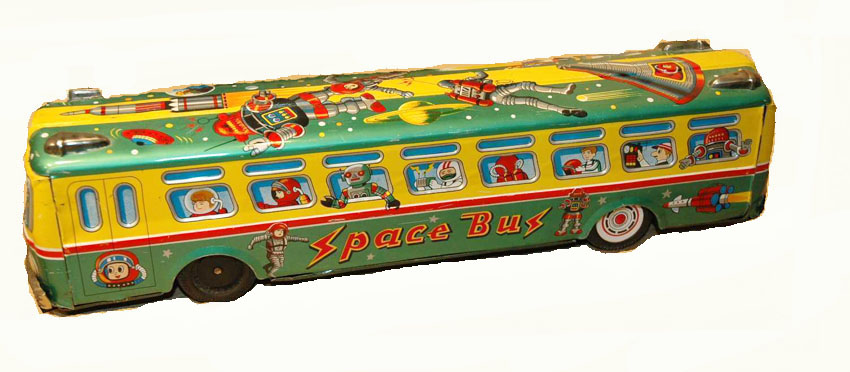 Space Bus Japan, Tin Litho, 15″ Long x 3″ Wide x 3.5″ high, Friction