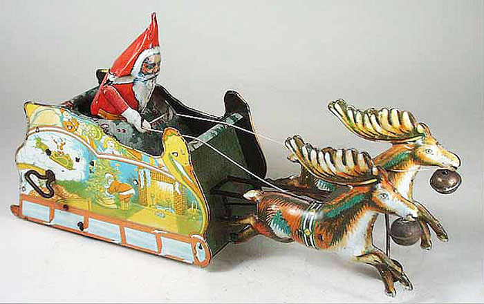 Manufacturer: Strauss Year: 1923 Category: Christmas Material: Tin Powered: Windup Size: 11" Long